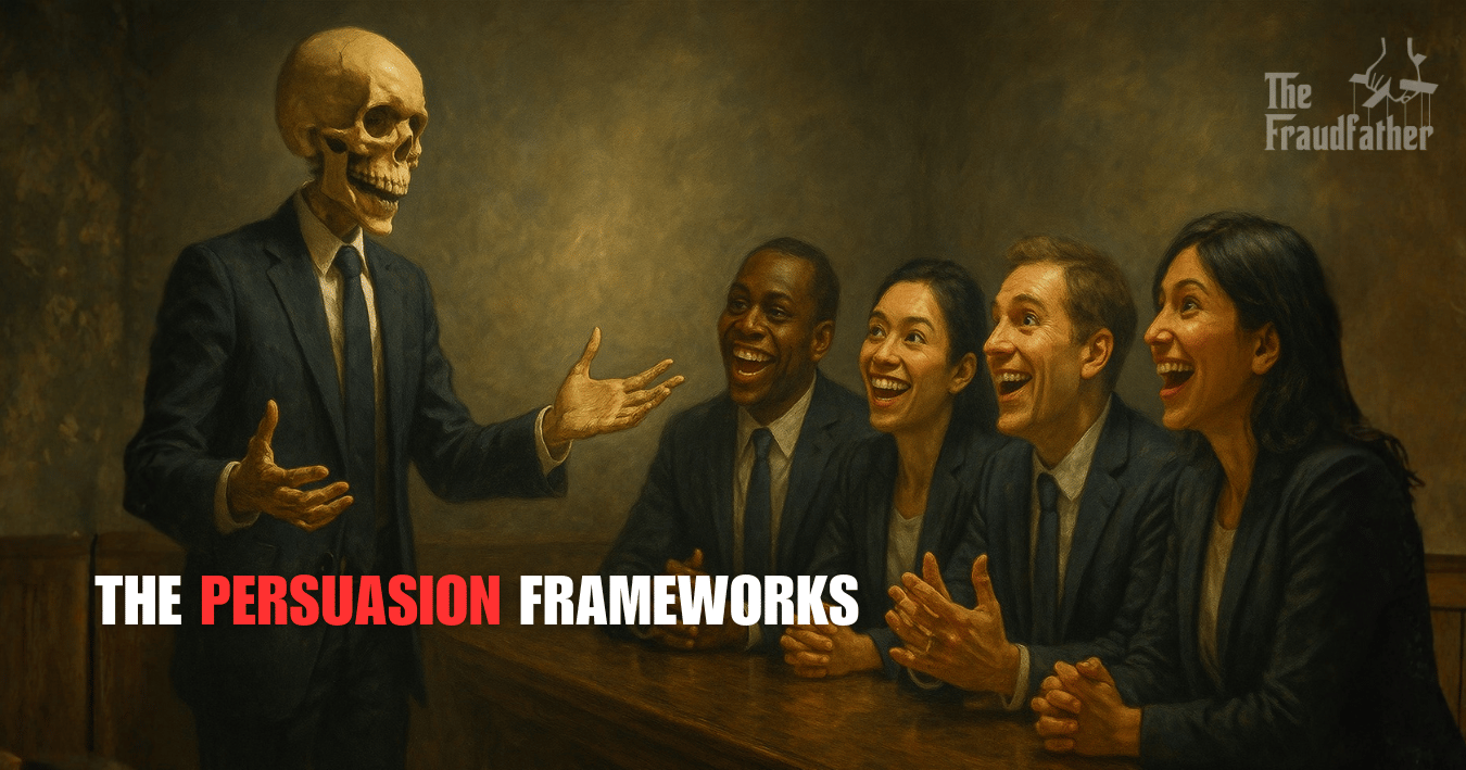 After two decades investigating financial crimes across four continents, I can tell you this with absolute certainty: every technique used by elite salespeople was pioneered by con artists, spies, and cult leaders. The only difference is intent. The mechanics are identical.