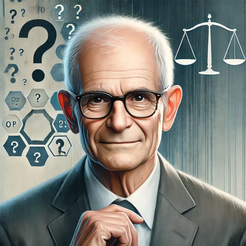 Daniel Kahneman: The Architect of Behavioral Insights—captured amidst the abstract representation of cognitive biases that shaped his groundbreaking work in decision-making and human psychology.