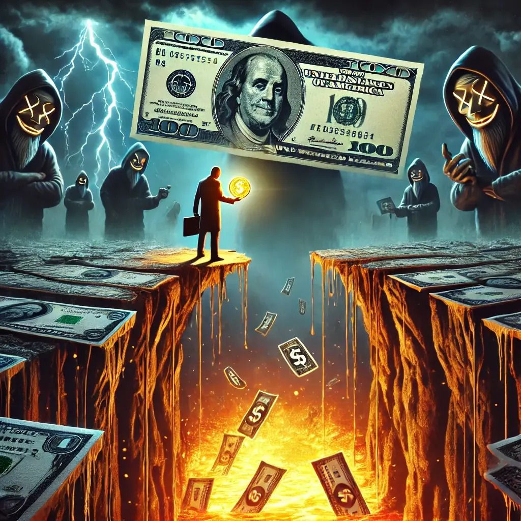 Walking the Crumbling Bridge of Inflation: As fear of loss intensifies, fraudsters wait in the shadows, ready to exploit the vulnerable with promises of false security.