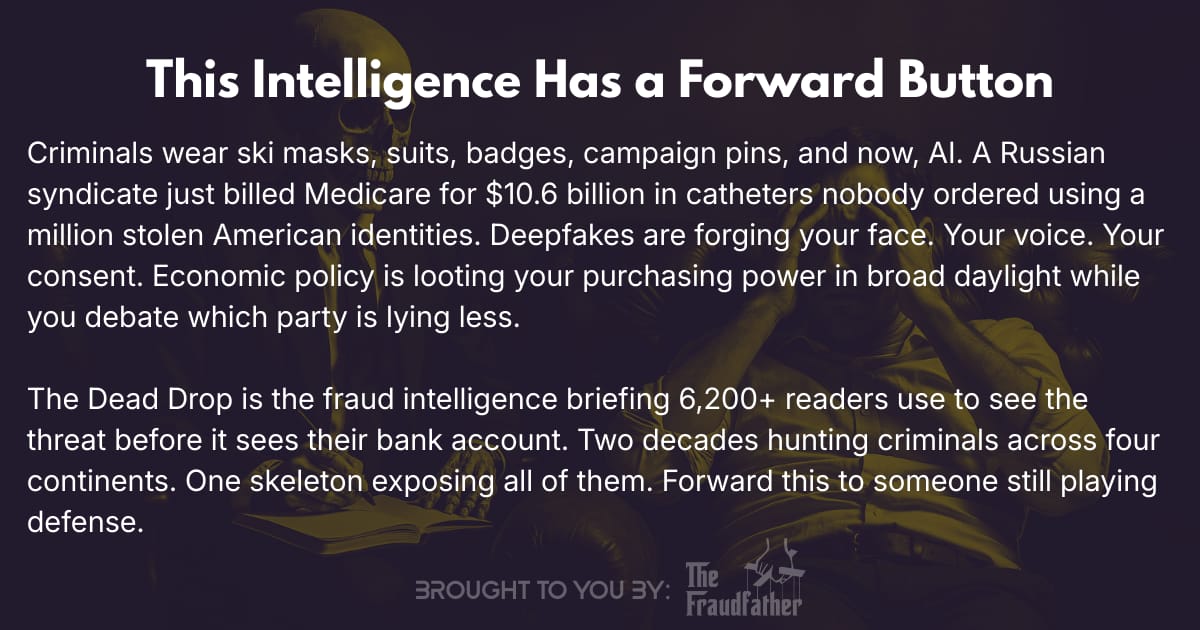 And then there are deepfakes. In our healthcare fraud series, we reported that criminals in an Illinois case used AI-generated audio to fabricate the voices of Medicare beneficiaries consenting to medical equipment. They submitted $703 million in fraudulent claims. Medicare paid $418 million before anyone noticed. Criminals manufactured human consent out of thin air, and the system paid out nearly half a billion dollars.