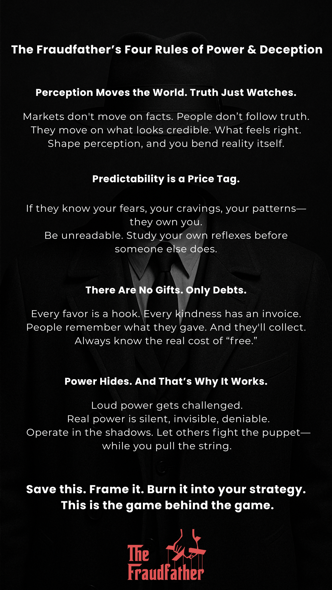 Welcome back to the Dead Drop. Isn’t it regrettable that what is broken gets your attention while what’s working gets ignored? That’s where the fraud creeps in—and where fortunes are silently made or lost. The world is not simply what appears on the surface, or what official narratives tell you. It's a complex stage where appearances are weaponized, where unseen threats can hollow out your very identity, and where your own instincts, if left unchecked, can be turned against you. To thrive in this landscape, you must train your sight to perceive what others miss, and fortify your mind against the subtle attacks that bleed fortunes dry. This week, the Dead Drop arms you with the insights to look beyond the obvious, revealing the true nature of modern plays for power and wealth.